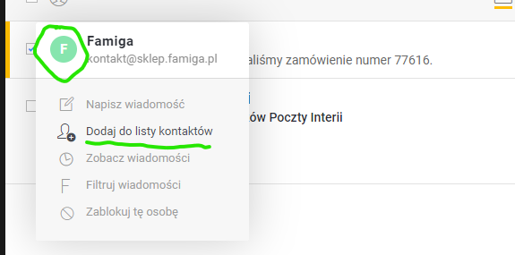 Pamiętaj również, aby oznaczyć Famigę jako zaufanego nadawcę! Kliknij na awatarze naszego kontaktu a następnie „Dodaj do listy kontaktów” :)