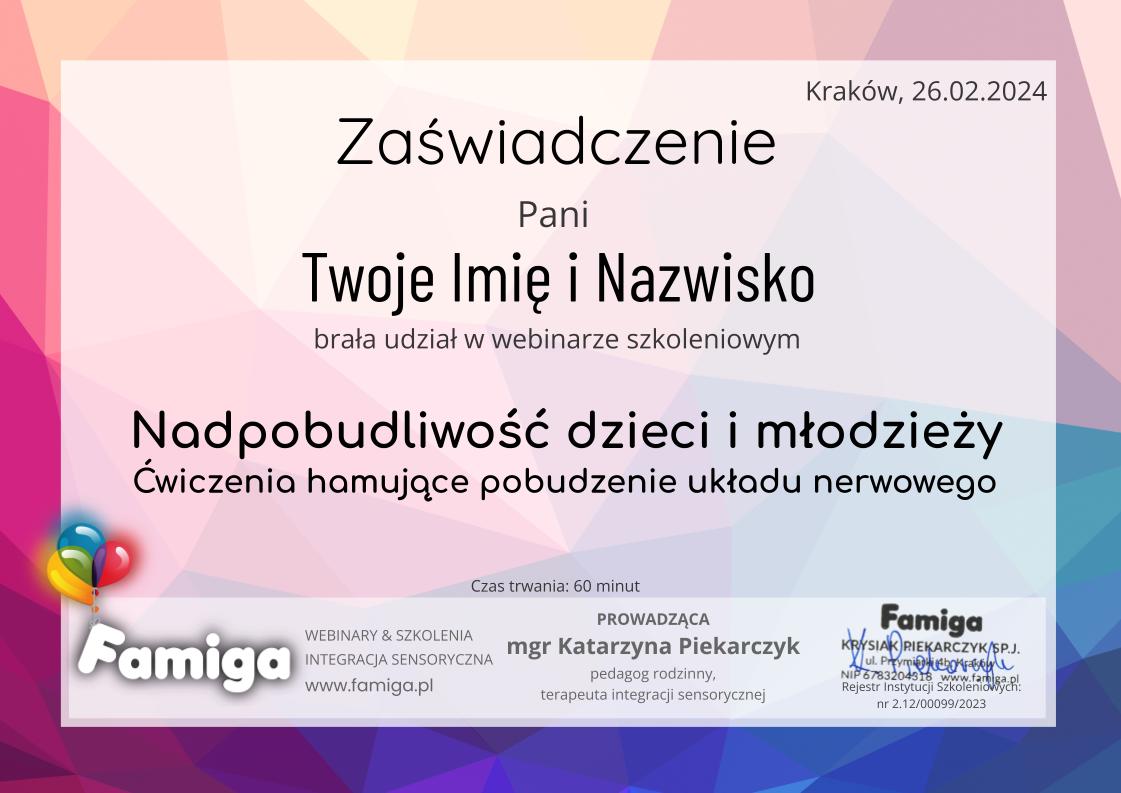 ⭐ Imienne zaświadczenie uczestnictwa