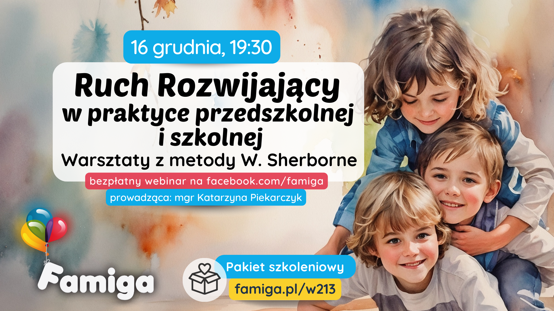 Serdecznie zapraszamy na wyjątkowy webinar poświęcony Metodzie Ruchu Rozwijającego Weroniki Sherborne – sprawdzonej i cenionej na całym świecie metodzie, która wspiera wszechstronny rozwój dzieci poprzez ruch i zabawę.
