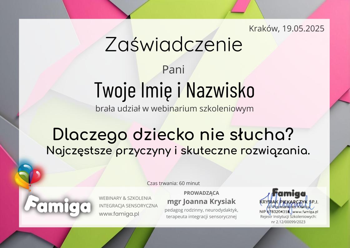 Zastanawiasz się, dlaczego Twoje dziecko często „nie słyszy”, gdy do niego mówisz? A może jako nauczyciel masz wrażenie, że Twoje prośby trafiają w próżnię? Brak reakcji dziecka nie zawsze wynika z braku szacunku czy złej woli. Zapraszamy Cię na praktyczny webinar, podczas którego przyjrzymy się temu, co naprawdę stoi za trudnościami w słuchaniu – i jak skutecznie na nie reagować.